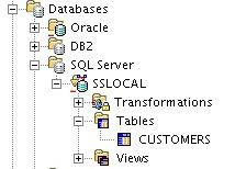 So far, we've run a mapping where we've moved data from one Oracle schema to another using a table join. Where things start to get more interesting is when you bring in non-Oracle data (which is what this feature is really designed for). How does that work? To test this out, I have a table in Microsoft SQL Server that contains some customer data, and to keep things simple I'm going to bring what's in it into an Oracle staging table. I firstly define another SQL Server database module, and import the customer table definition into it.