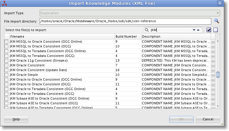 Before I get into editing the JKM, let me briefly go through an introduction of ODI Journalizing, aka Change Data Capture (CDC). In case you missed it earlier, ODI CDC is implemented using a Journalized Knowledge Module. The JKM generates the infrastructure for the CDC, creating journal tables that store the change rows and views that provide access to the change rows for use in ODI Mappings. ODI CDC can be implemented using various capture processes, such as triggers on source tables, timestamps on rows, or mining of the database logs via Oracle Streams or, in our case, Oracle GoldenGate. A great explanation of ODI JKMs and how they work, written by Christophe Dupupet of the Oracle Data Integration A-Team, can be found here.