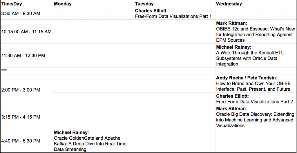 The rest of the Rittman Mead attendees will be presenting one or more sessions during the week.