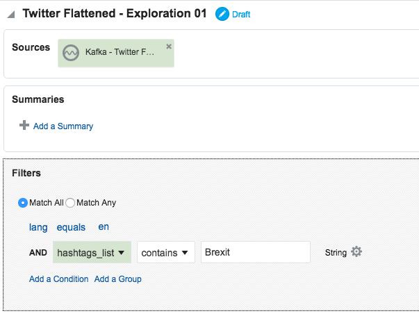 In my previous post I looked the latest release of Oracle Stream Analytics (OSA), and saw how it provided a graphical interface to "Fast Data". Users can analyse streaming data as it arrives based on conditions and rules. They can also transform the stream data, publishing it back out as a stream in its own right. In this article we'll see how OSA can be used with Kafka.