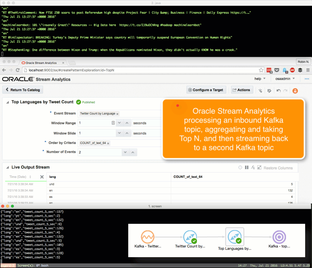 Stream Analytics and Processing with Kafka and Oracle Stream Analytics