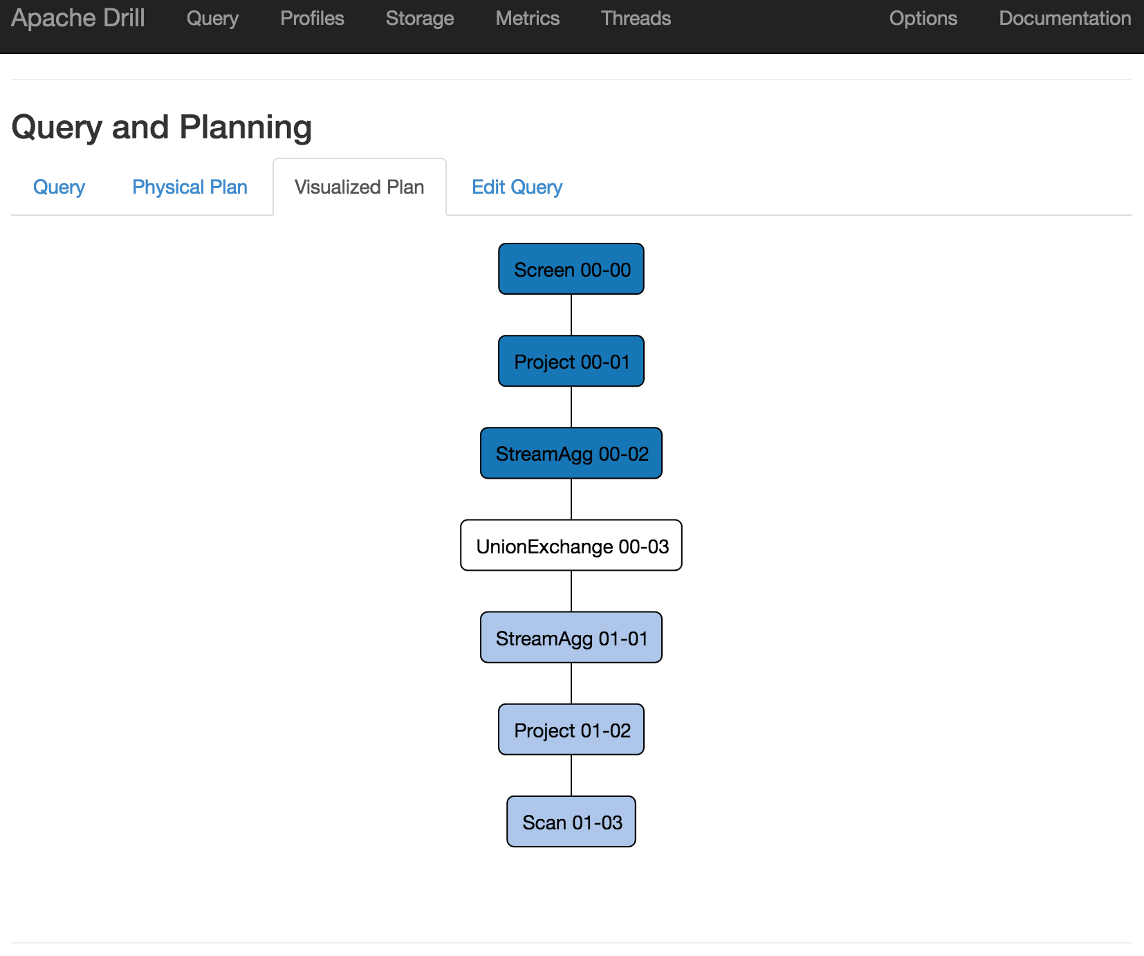Just as Oracle has its Cost Based Optimiser (CBO) which helps it determine how to execute a query, and do so most efficiently, Apache Drill has an execution engine that determines how to actually execute the query you give it. This also includes how to split it up over multiple nodes ("drillbits") if available, as well as optimisations such as partition pruning in certain cases. You can read more about how the query execution works here, and watch a good explanation of it here. To view the explain plan for a query use explain plan :