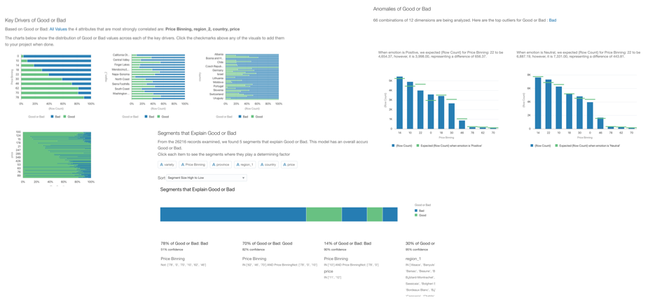 Some Data Science projects could already end here. If the objective was to find insights, anomalies or particular segments in our dataset, Explain already provides that information in a clear and reusable format. We can add the necessary visualization to a Project and create a story with the Narrate option.