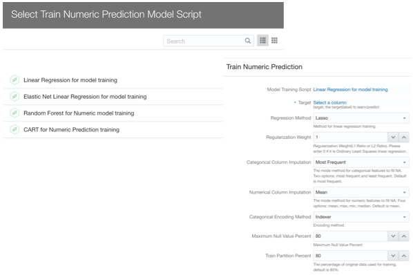 If we want to have granular control over columns, algorithm and parameters to use, OAC provides the Train Model step in the DataFlow component.
