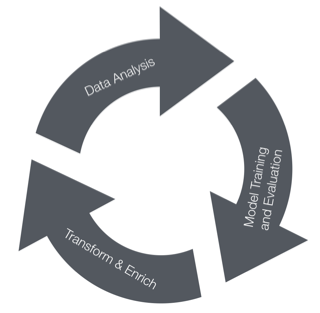 Data Analysis is declared as Step #4 however since the Data Transformation and Enrichment phase we started a circular flow in order to optimize our predictive model output.
