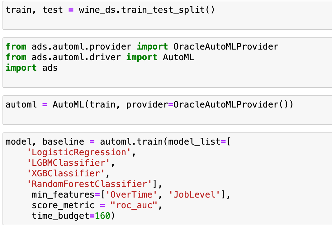 The AutoML Python libraries are provided in the oracle-ads (Accelerated Data Science) package. We won't really go in to that here, but it's important to know where to find the gritty details, once you want to expand on what the automatically generated models bring to the table.