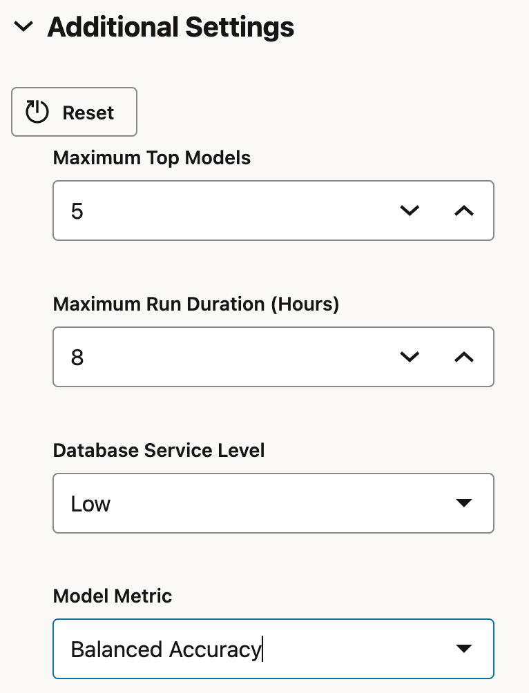 The last setting tells AutoML which result model assessment metric to order the models by, in order to decide which model performed the best.