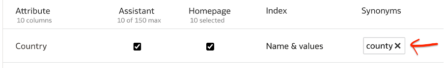 For the experiment’s sake, I went back and added a new synonym for the attribute Country as ‘county’ and re-indexed the dataset.