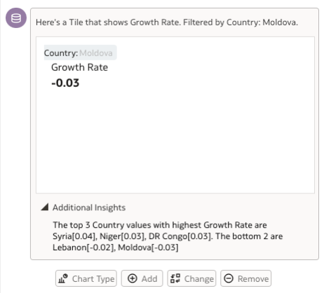 If you check the Additional Insights, even when Moldova is not specified to have the lowest growth rate in the latest question, the insight detects the countries with the highest growth rate here.
