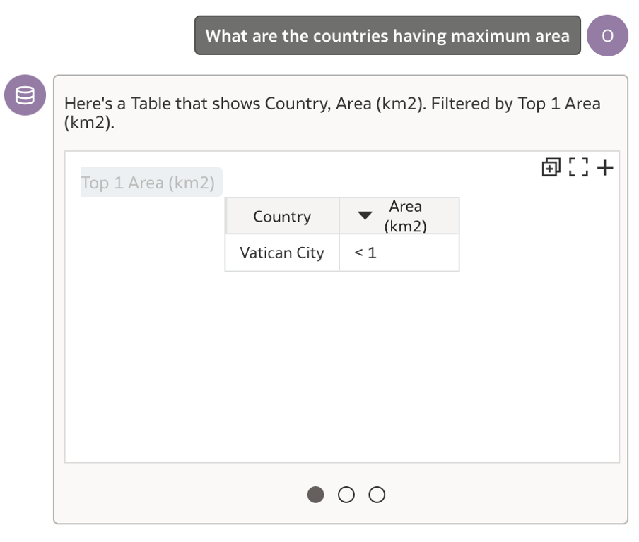 Optimistically, I ask the assistant next – ‘Which country has the maximum Area (km2) other than the Vatican City?’.