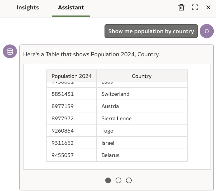 Starting with asking the Assistant – ‘Show me population by country’.
