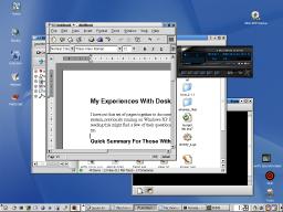 The two desktop systems, GNOME and KDE, are both good and either of them would suffice if it came to it. KDE seems to have more functionality, whilst GNOME, at least in it's Ximian guise, is a bit slicker. However, because they share different component systems (Bonobo and Kparts, respectively), they're not properly integrated and you'll find things like cut-and-paste don't work very well. Also, you miss the universality of OLE, which has only been partly implemented in Kparts and Bonobo.