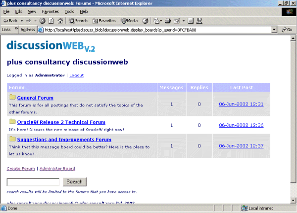 A couple of years ago I helped put together a discussion forum application using the PL/SQL Web Toolkit. We released two versions of it and put it up on sourceforge, and for a while it was used as the internal discussion board within our company.