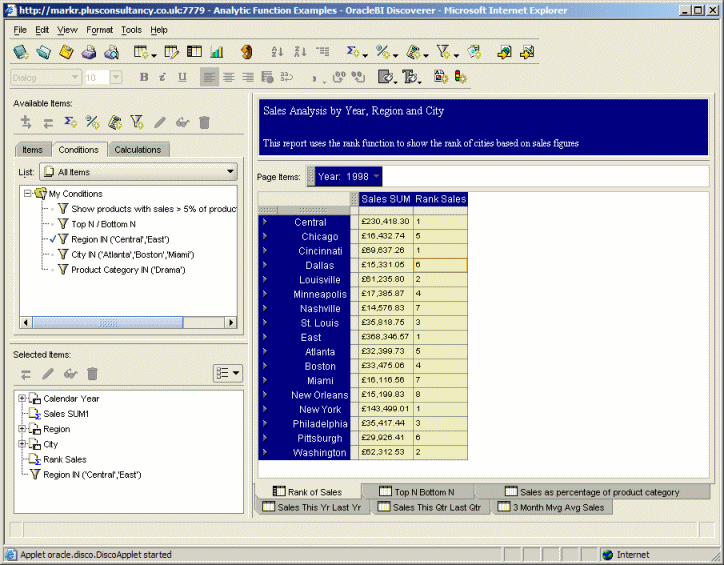 and this is the new OracleBI Discoverer Plus 10.1.2, a.k.a. "Drake", also a java applet.