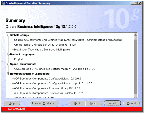 I finally finished downloading the three Portal and Wireless AS10g Disks earlier today, together with the two Business Intelligence AS10g disks and the Business Intelligence Tools disk. Here's how the installation went.