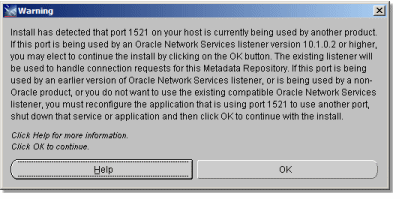 I guess what's going on here is that the installer has detected something listening on 1521 (the regular port for Oracle databases) and is checking that it's a 10g database - given that the infrastructure database about to be installed is a 10g 10.1.0.3 database, I know I've had problems getting 10g databases to automatically register with 9i listeners, so what's happening here is that the installer is only going to add the infrastructure database to a 10g listener, which it knows will go ok.