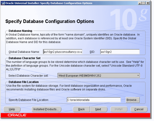 As with AS10g Release 1, I made sure I had around 20GB of free hard disk space on my laptop, and with 2GB of RAM this is usually OK. I've got Windows XP Professional SP2 which officially isn't supported, but as it's on the laptop anyway I thought I'd give it a go before going through the process of installing Windows 2000 or Windows 2003. I''ll go on to it later but the upshot of this is that I've not had any problems.