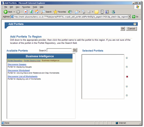 Once you're at this point you can start working through the example in the OTN article, or for a more in-depth look at Discoverer portlets, take a look at the BI Dashboards viewlet demo or work through the Oracle-By-Example tutorial.