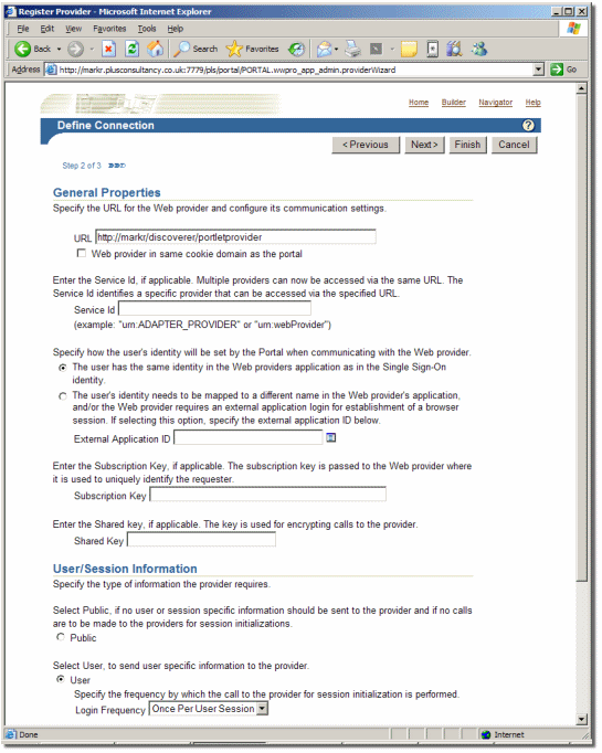 - enter the URL of the Discoverer Portlet Provider in the URL field (the one you used above), then