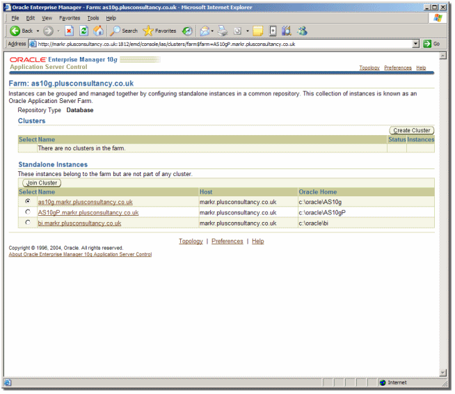 The next step then is to associate our Business Intelligence tier with our Infrastructure tier. You can read the full set of instructions for doing this in the Application Server 10g online docs, at http://download-uk.oracle.com/docs/cd/B14099_02/bi.1012/b13918/assoc.htm
