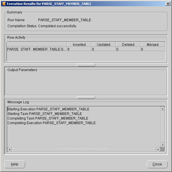 Next, deploy the mapping as normal using the Deployment Manager, and then execute the package to run the mapping. If you've done it all correctly, you should get something like this: