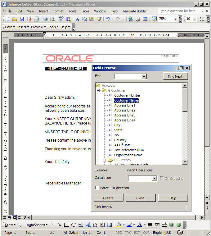 The download comes with a number of samples consisting of templates and XML data. The tutorial starts off with a "customer balance letter" template and so I worked through this.