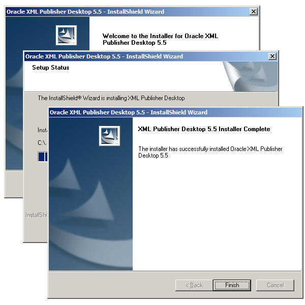 The Desktop install is an InstallShield installer that installs some components into Microsoft Word 2000 or higher. My understanding is that future releases of XML Publisher Desktop will include Microsoft Excel components, but for the time being you build all your reports using a Word add-in. The installer runs simply and with no problems and then opens up the tutorial document on your desktop: