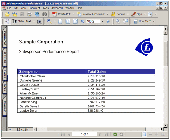 You can then preview the report as a PDF by selecting Preview > PDF from the XML Publisher toolbar. My report looked like this when previewed: