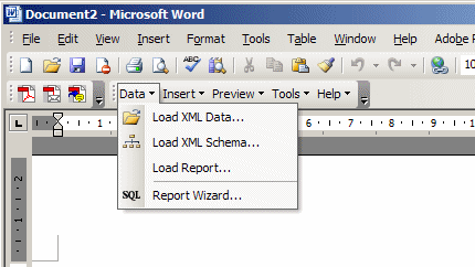 Note that there's a new menu entry in 5.6 - "Load XML Schema" - which gives you the additional option of loading an XML Schema document that fully defines the dataset that you'll be working with, as opposed to the "Load XML Data" option that might only feature a subset of the possible XML elements you'll be reporting on. Of course the XML Schema document doesn't contain any data and you're therefore not going to be able to look at a live view of the report output with data in.