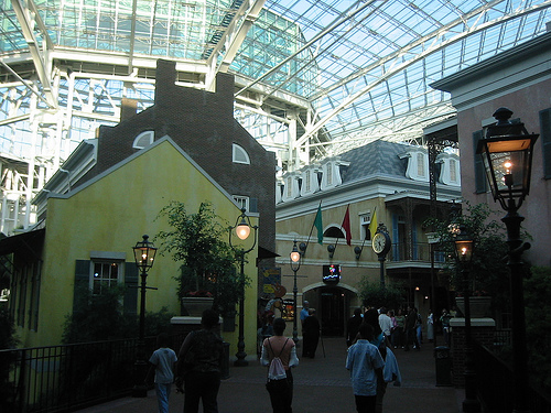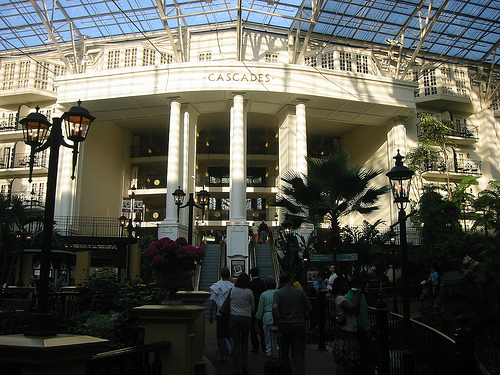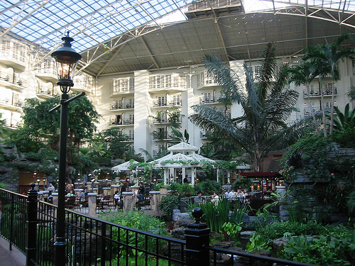 I thought I'd resist the temptation to write a blog entry just after I got here, as it's always a bit strange when you first get somewhere and you've been travelling through timezones for most of the day. I'm glad I did actually as it all seemed a bit bizarre when I got here, but given a good night's sleep it all seems to make a bit more sense. The conference venue, the Gaylord Opryland Hotel & Resort, is a kind of "super-hotel and resort" with about 2000+ rooms and five distinct zones all under a glass canopy - apparently it's the biggest hotel in the world all under one roof.