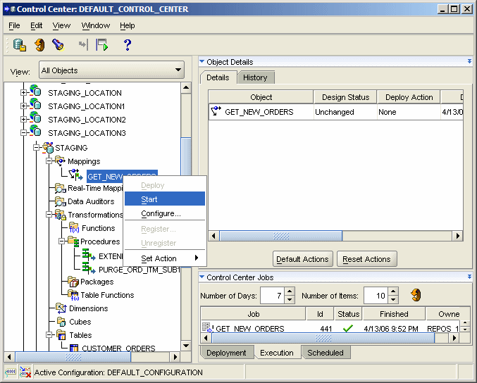 Before we start though, a quick briefer on Asynchronous Distributed Hotlog Change Data Capture. Change Data Capture (I'll shorten it to CDC from now onwards) uses the concept of publishers, database users that publishes captured changed data, and subscribers, database users that consumes the changed data via subscriptions. CDC makes use of change tables and subscriber views. Subscribers to the changes get their own subscriber views against the change tables so that they look at a consistent set of data. Subscribers can extend and purge their subscription windows, and data can be purged from the change tables if no subscribers include the data in their views anymore. CDC is controlled using calls to PL/SQL database packages that you set up yourself manually when you enable CDC, and then call from OWB transformations when you copy the data into your warehouse staging area. Probably the best guide to Asynchronous Change Data Capture is Mark Van de Weil's "Asynchronous Change Data Capture Cookbook", which gives an excellent background to using the feature including a step-by-step set of instructions for propagating changes from the SCOTT schema. So then, how do we go about using it?