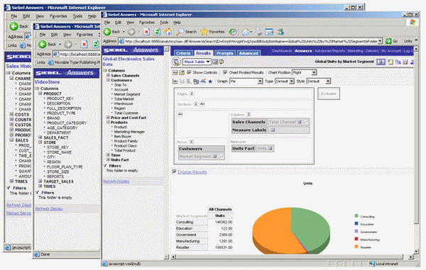 Given that at least the initial releases of Oracle BI Suite Enterprise Edition will be largely based on re-badged Siebel Analytics products, the best way of understanding how this technology will work is to take a look at how the latest release of Siebel Analytics, now at version 7.8, works.