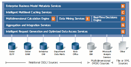 - OracleBI Analytics Server, based on Siebel Analytic Server