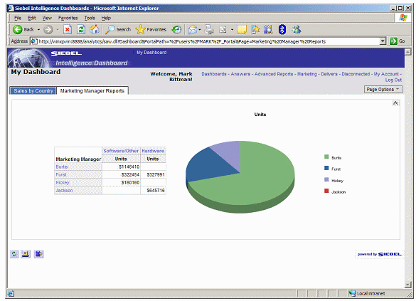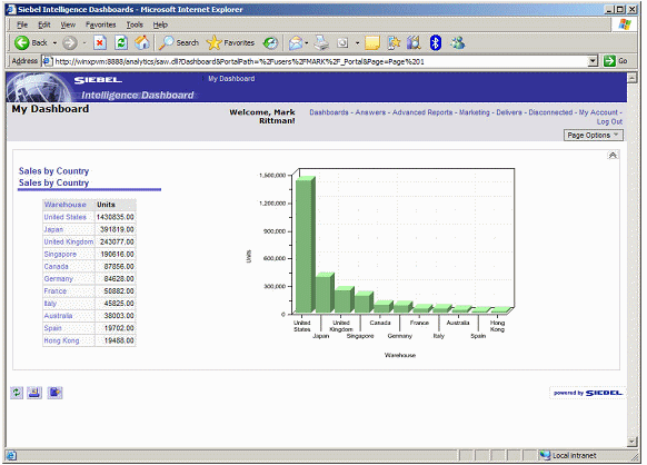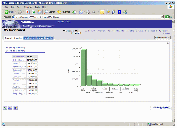 In this walkthrough, you are a sales manager looking to analyze the performance of your organization. You want to see how well products are selling by countries and regions, and understand how sales break down by marketing manager and the product you sell. You would also like to see these results graphically, and on a dashboard that comes up whenever you log in.