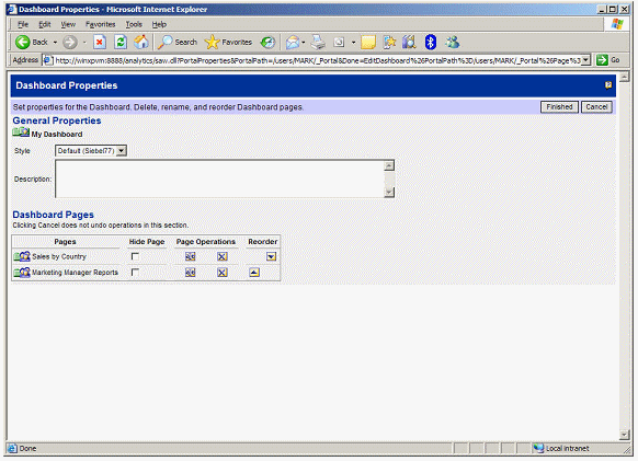 Then you click on the "Dashboard Properties" button and rename the pages, which become tabs on your dashboard.