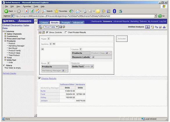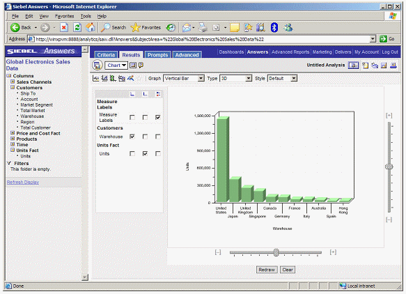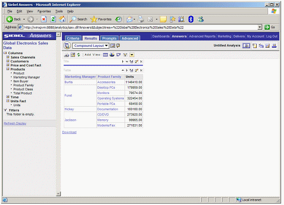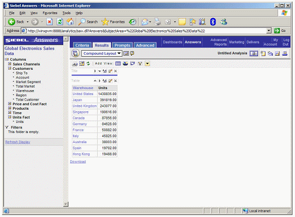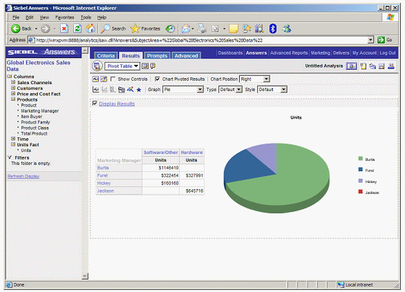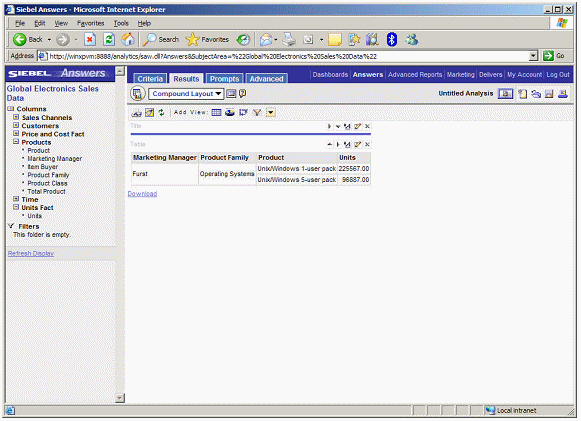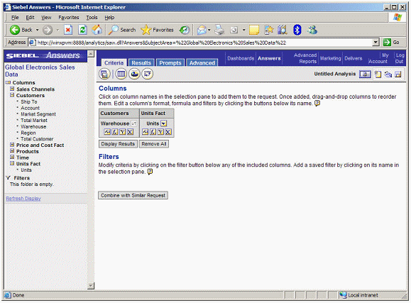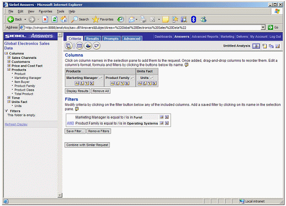 To perform this drilling, Siebel Answers applies a filter to the results. To see the filter, you click on the Criteria tab.