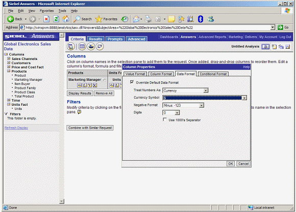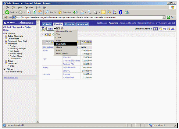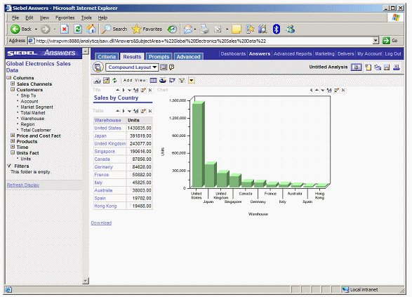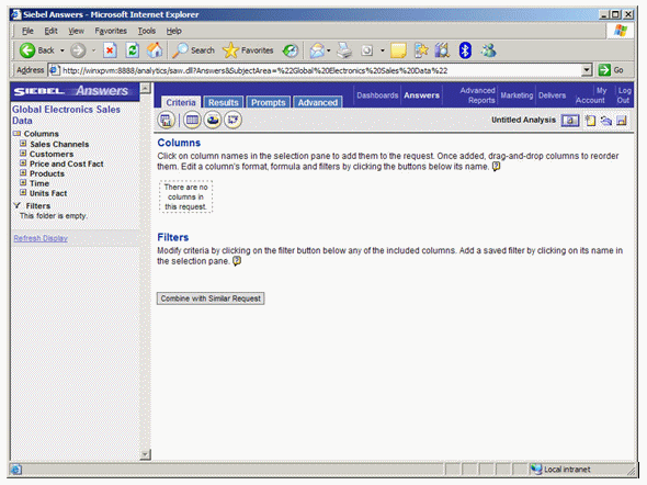 Now the data is ready, you start up Siebel Answers and select the Global Electronics Sales Data subject area.
