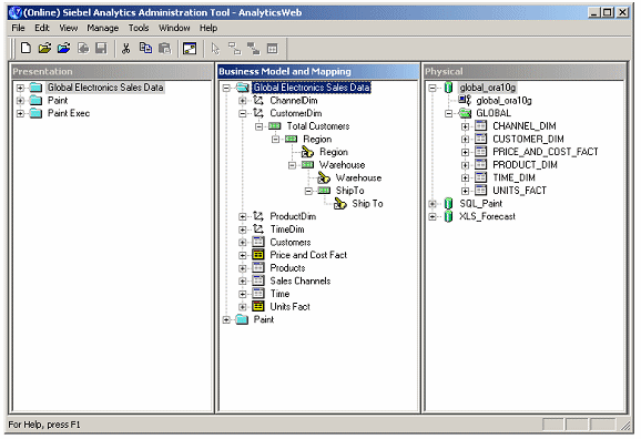 Before you start, your administrator has imported the Global Sales Sample data into the physical layer of the Enterprise Semantic Model, and then used this to build the business and presentation layers.