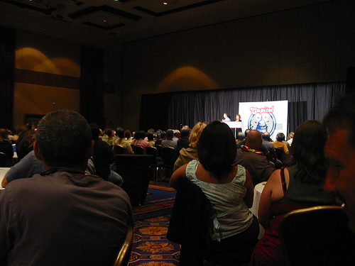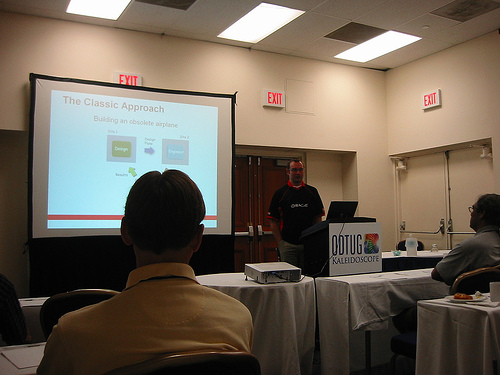 Wednesday started off with a fuzzy head, and what better to wake me up than being the ambassador for Don Burleson's talk on the Cost-Based Optimizer. Don warned us at the start that he was also a licensed auctioneer and therefore he could go on for an hour without stopping talking (very loudly), and he certainly didn't let us down. Unfortunately I had to bring my laptop in and do some work on my demos for my presentation later on that day, but it was good to catch up with him and Janet and certainly he had the biggest audience that I'd seen all week. I also did the ambassador thing again later on that day for Mike Ault's ETL Techniques for Developers presentation, a very good presentation and again a good-sized audience who gave him some pretty good scores on the evaluation forms.