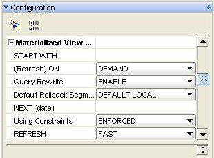 The configuration options section of the page lets you specify materialized view-specific parameters such as the refresh type, when the refresh takes place, whether it's eligable for query rewrite and so on. This all seems pretty much the same as with earlier versions of OWB.
