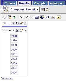 Now, when you list out the Year column, you get all of the years, not just the ones that are in both the Oracle table and Excel sources.