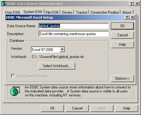 I now create a System DSN that points through to this Excel file, after copying it onto the server that's running the Oracle BI Server.