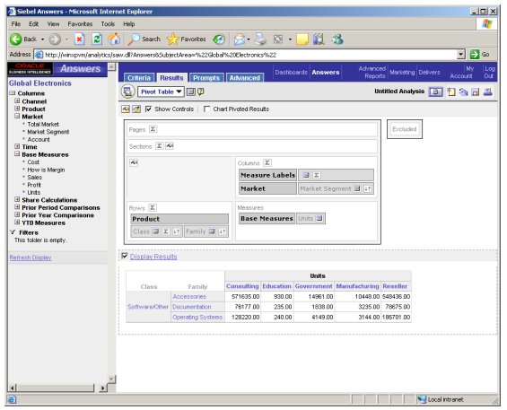 In this example, we'll use the Global Analytic Workspace that comes with the Global Sample Schema, downloadable from OTN, and Oracle Database 10.1.2.0.2 (10.1.2.0.1 has an OLAP bug that stops it working properly, make sure you apply the patch before trying this out.) This Analytic Workspace contains a cube called "Units Cube" that is dimensioned by Product, Customer, Time and Channel.