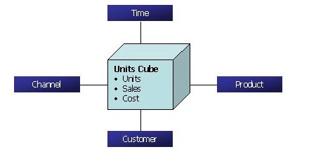 The cube itself contains three measure; Units, Sales and Cost, and whilst some of the dimensions contain multiple hierarchies, to keep the example simple we'll just use one hierarchy for each dimension.