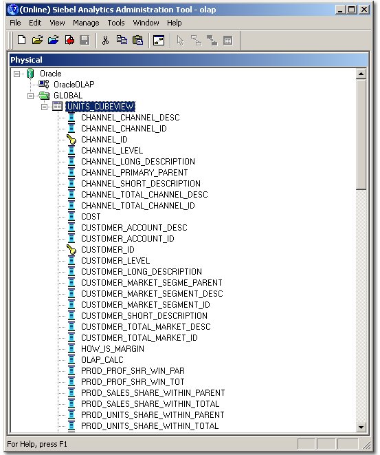 Unlike OracleBI Discoverer Plus OLAP, Oracle BI Suite Enterprise Edition accesses Analytic Workspaces using SQL views over the data, rather than the Java OLAP API. When you install the Global Sample Schema using the "complete" option, the installation script creates this view for you, using the following DDL:
