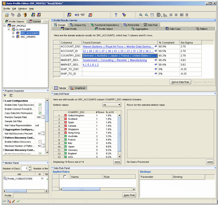 This Data Rule then becomes an object in the Project tree that you can then apply to multiple columns within tables. For our purposes though, we need to apply the data rule to the COUNTRY_DSC column of the SRC_ACCOUNTS table.