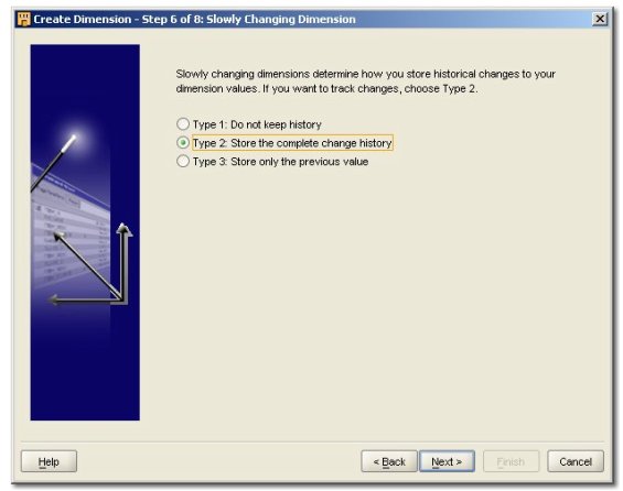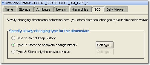 Once I've created the basic definition for each dimension, creating the dimension attributes, levels, hierarchy and so on the same for both dimension versions, I then go into the Data Object Editor to fine-tune the SCD handling.