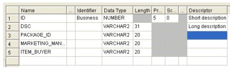As in this case I'm not allowed by OWB to designate the business key as also the short description, I therefore keep the NAME attribute and leave it as the short description, and set the DSC attribute to be the long description.