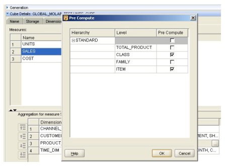 You can also go in and select the levels in the dimensions are pre-computed. Unlike sparsity, OWB uses a sensible default for pre-computing and I leave this at the default settings: