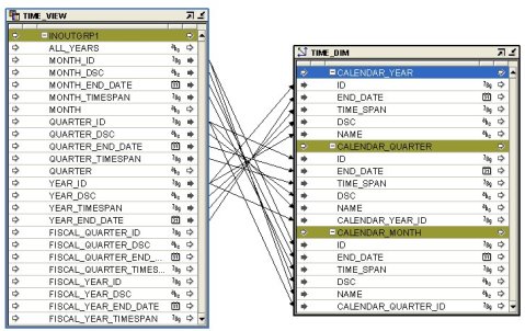 Now, when I map to the time dimension, I bring across the source values that I need, like this:
